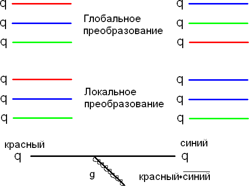 при этом может изменяться тип (аромат) кварка, цвет кварка остается без изменения: