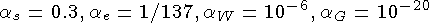 - заряды соответствующих взаимодействий. Для слабого поля,