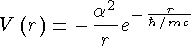 Потенциал такого взаимодействия (потенциал Юкавы) следующим образом зависит от расстояния r между частицами: