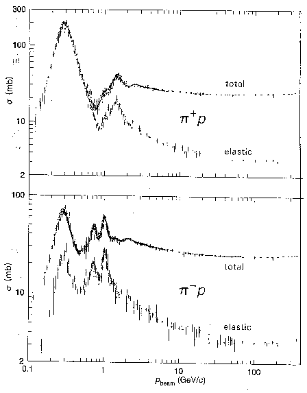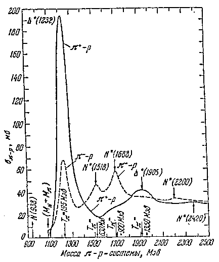 В сечении сильновзаимодействующих частиц наблюдаются резонансы - коротко живущие